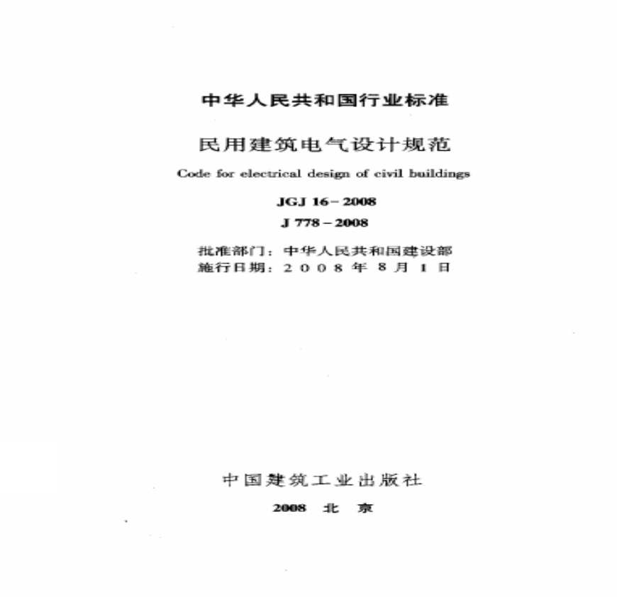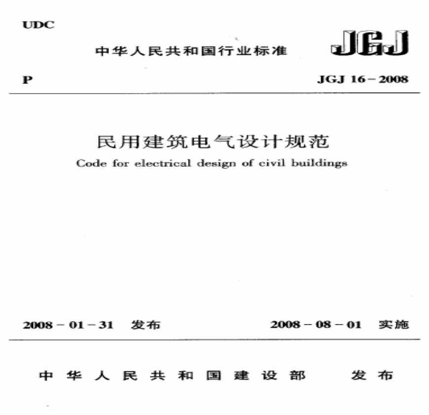《(附条文说明[另册])》本规范适用于城镇新建、改建和扩建的民用建筑的电气设计,不适用于人防工程、燃气加压站、汽车加油站的电气设JGJ