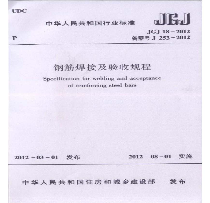 JGJ 18-2012 钢筋焊接及验收规程资料下载,喜欢的朋友可以下载收藏!