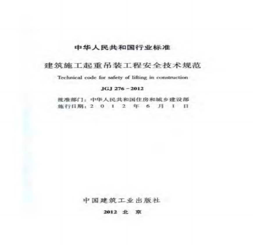 JGJ 276-2012 建筑施工起重吊装工程安全技术规范资料下载,喜欢的朋友可以下载收藏!