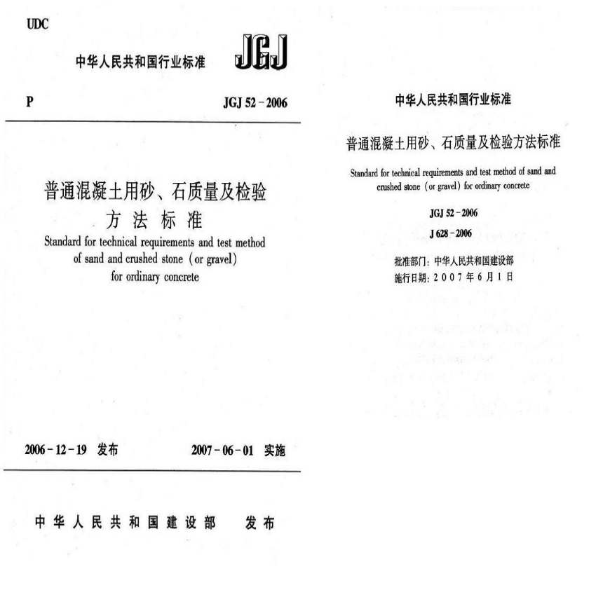 > JGJ52-2006《普通混凝土用砂、石质量及检验方法标准》