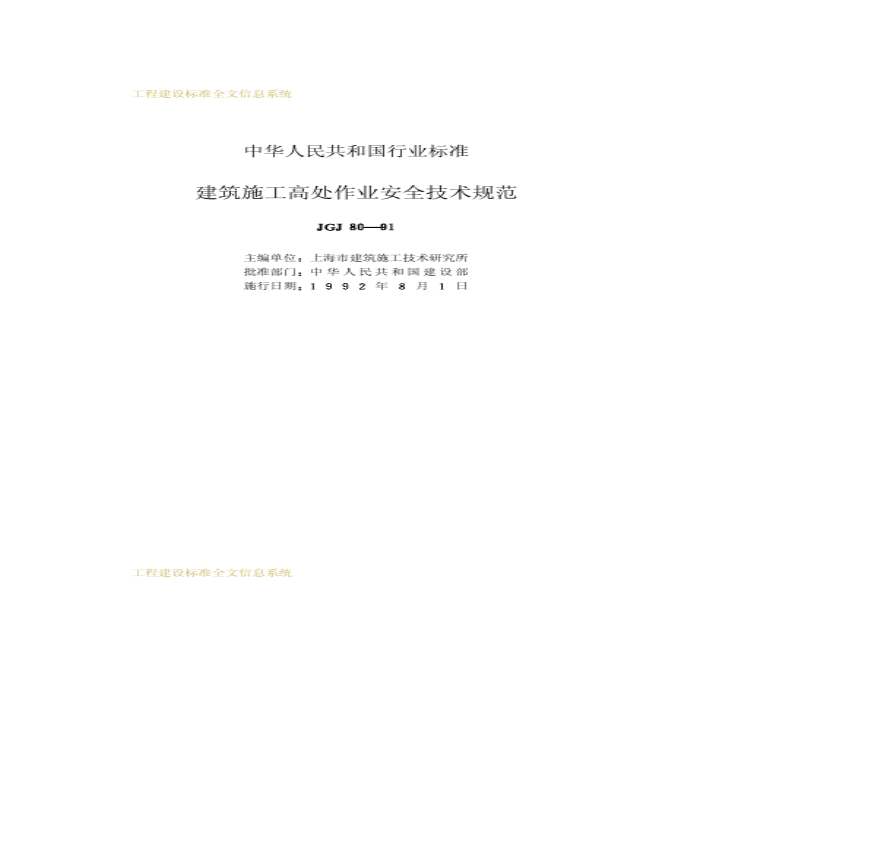 JGJ 80-1991 建筑施工高处作业安全技术规范资料下载,喜欢的朋友可以下载收藏!
