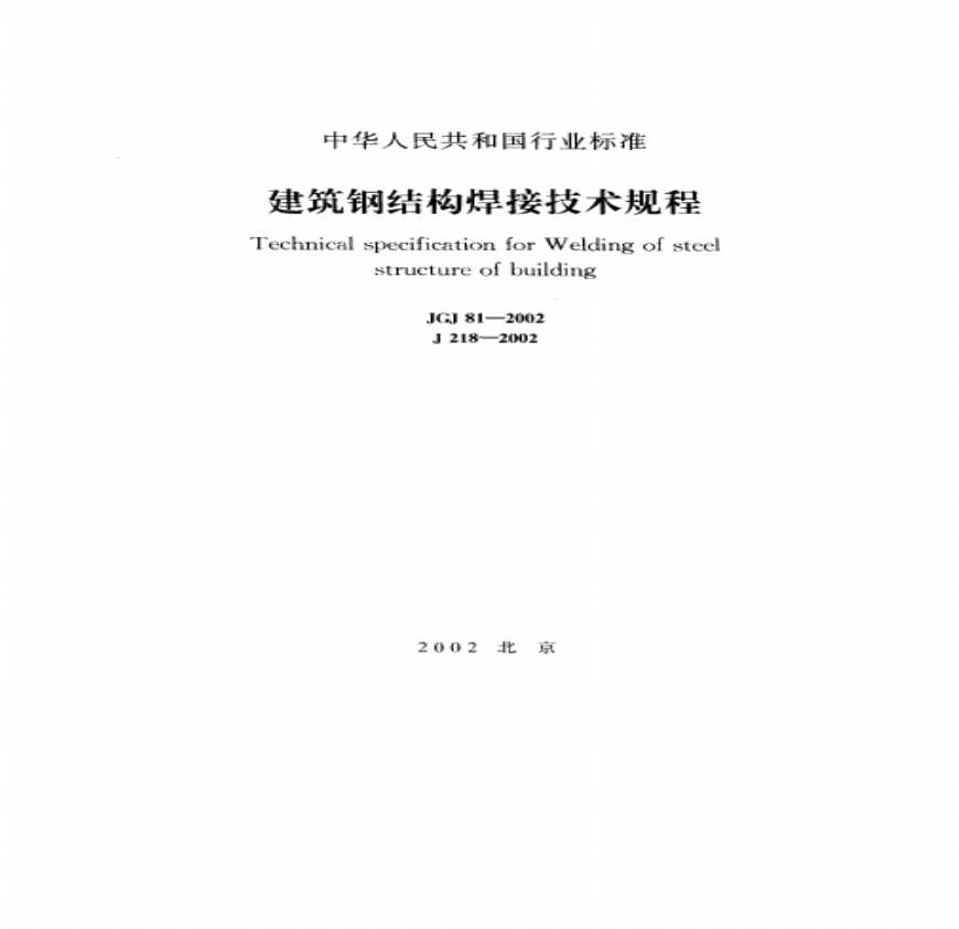JGJ 81-2002 建筑钢结构焊接技术规程资料下载,喜欢的朋友可以下载收藏!