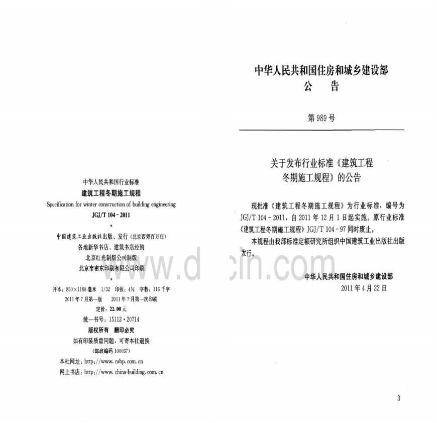 JGJ/T 104-2011《建筑工程冬期施工规程》.pdf 免费下载