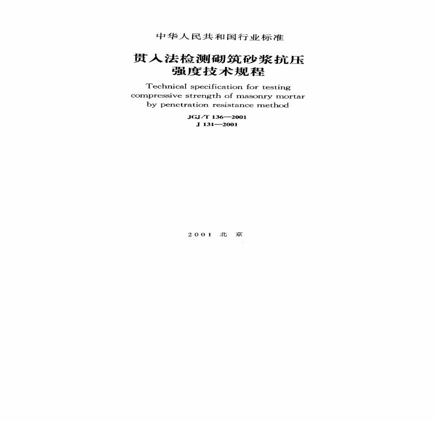 > JGJ/T_136-2001贯入法检测砌筑砂浆抗压强度技术规程