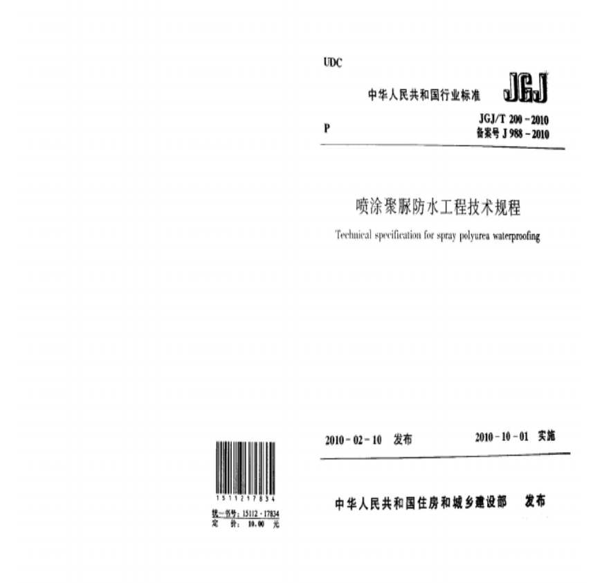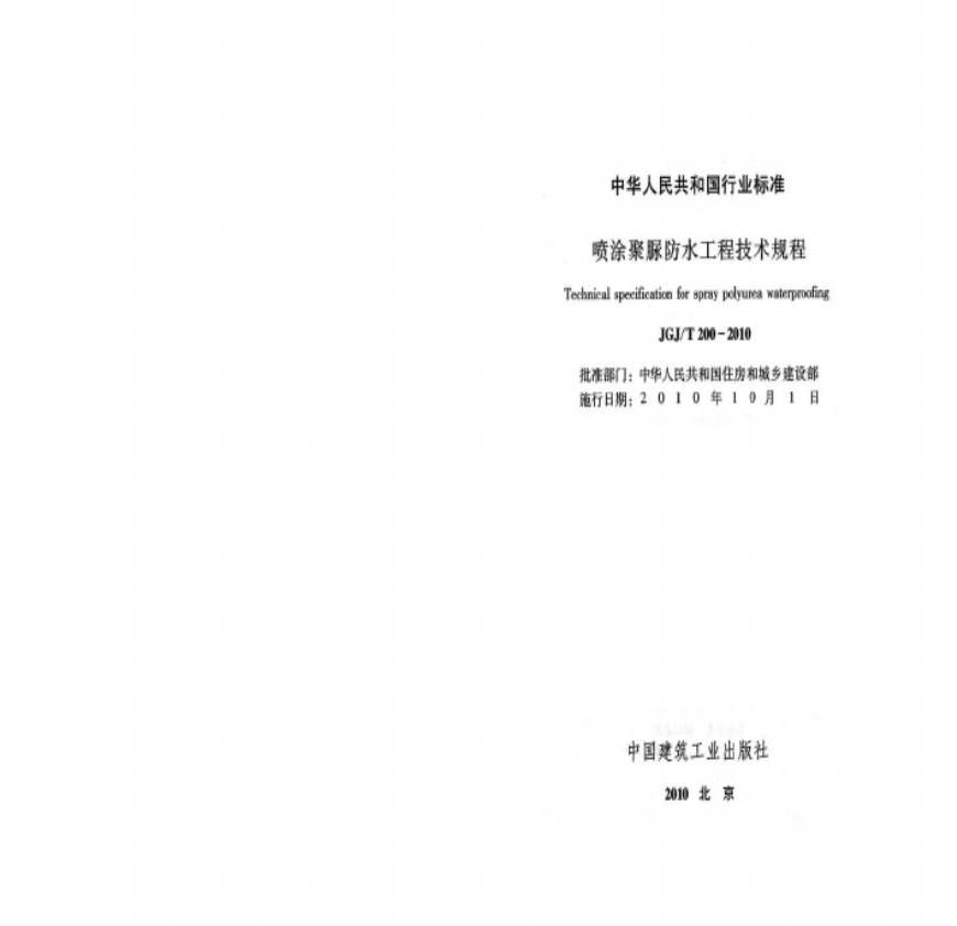 JGJ+T+200-2010+喷涂聚脲防水工程技术规程(高清).pdf 免费下载