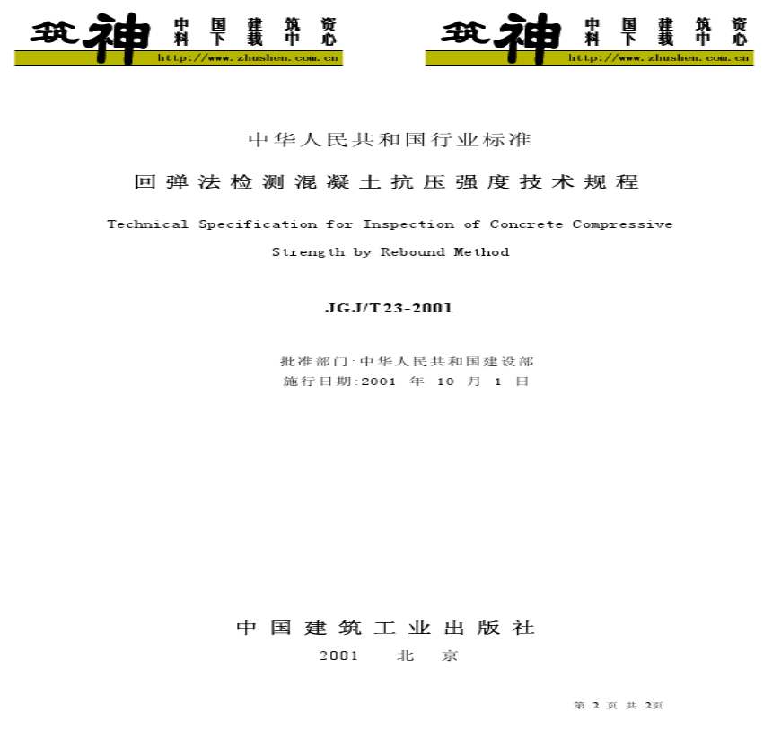 JGJ T23-2001回弹法检测溷凝土抗压强度技术规程(含条文)资料下载,喜欢的朋友可以下载收藏!