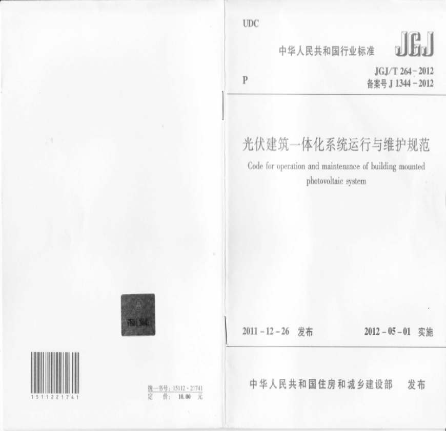 > JGJT264-2012光伏建筑一体化系统运行与维护规范