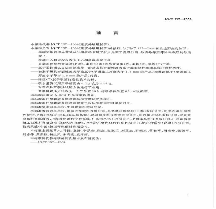 JG-T 157-2009 建筑外墙用腻子.pdf 免费下载