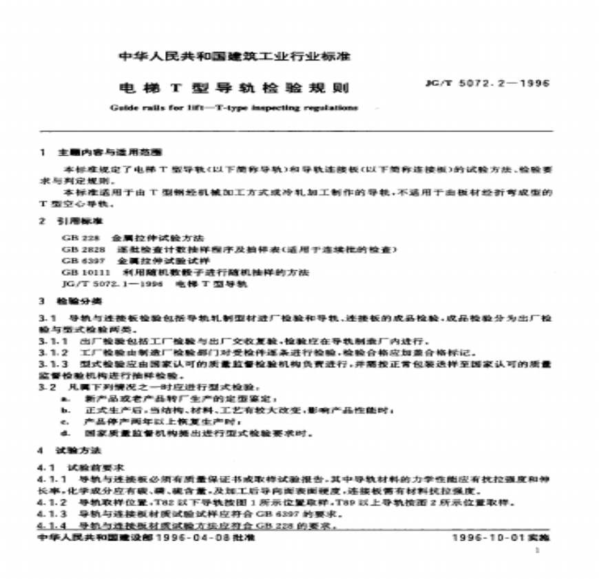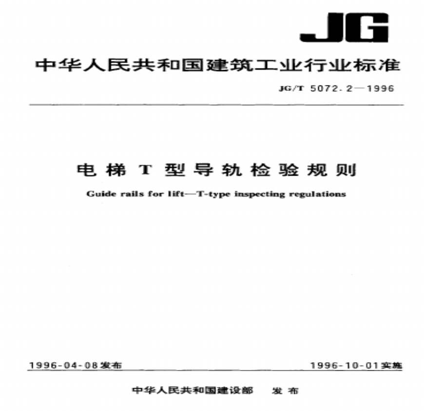 建筑工业行业标准(JG)本标准规定了电梯T型导轨和导轨连接板的试验方法、检验要求与判定规则。