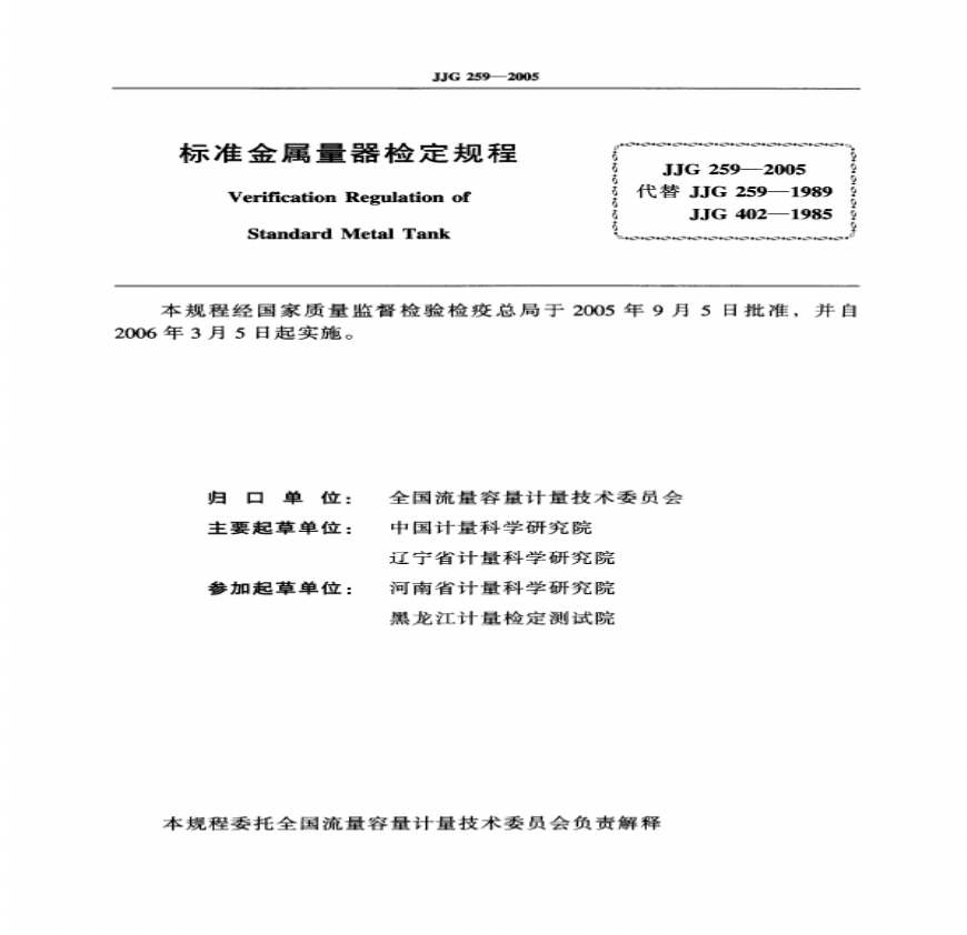 > JJG_259-2005标准金属量器检定规程