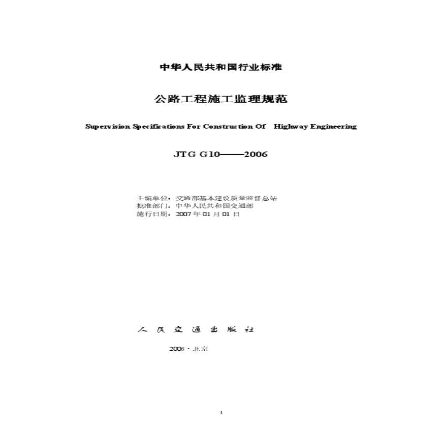 JTG G10-2006 公路工程施工监理规范.pdf 免费下载