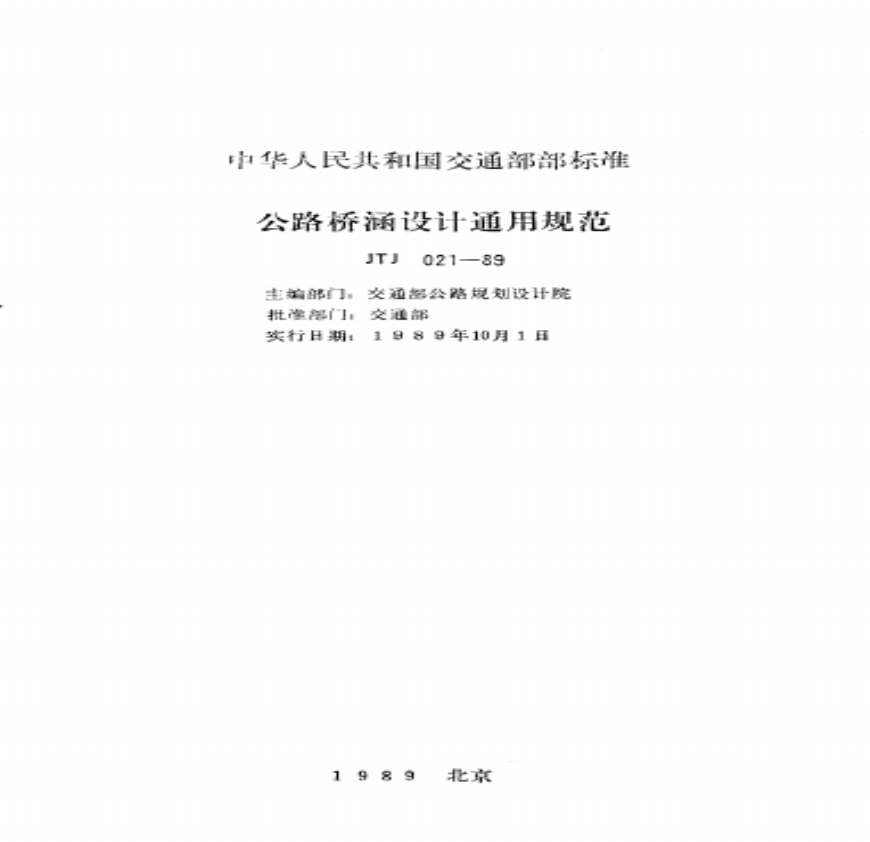 > JTJ 021-89《公路桥涵设计通用规范》