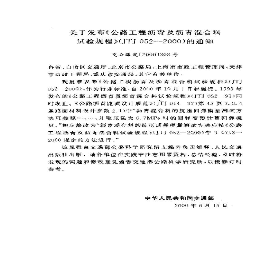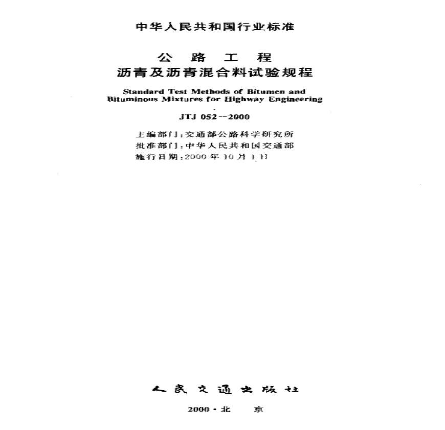 > JTJ 052-2000公路工程沥青及沥青溷合料试验规程