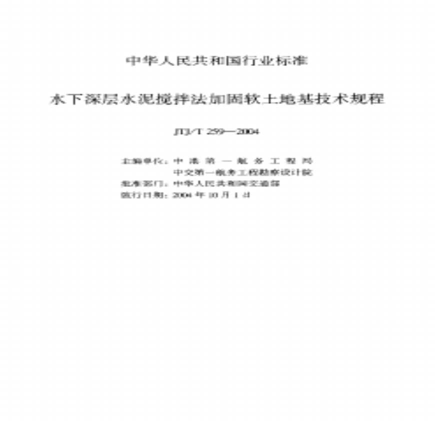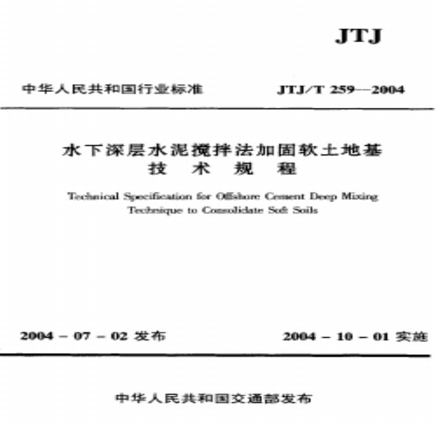 > JTJ T259-2004《水下深层水泥搅拌法加固软土地基技术规程》