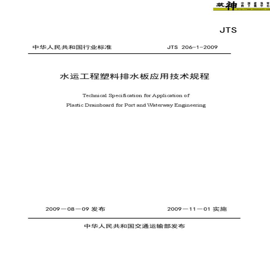 JTS206-1-2009水运工程塑料排水板应用技术规程资料下载,喜欢的朋友可以下载收藏!