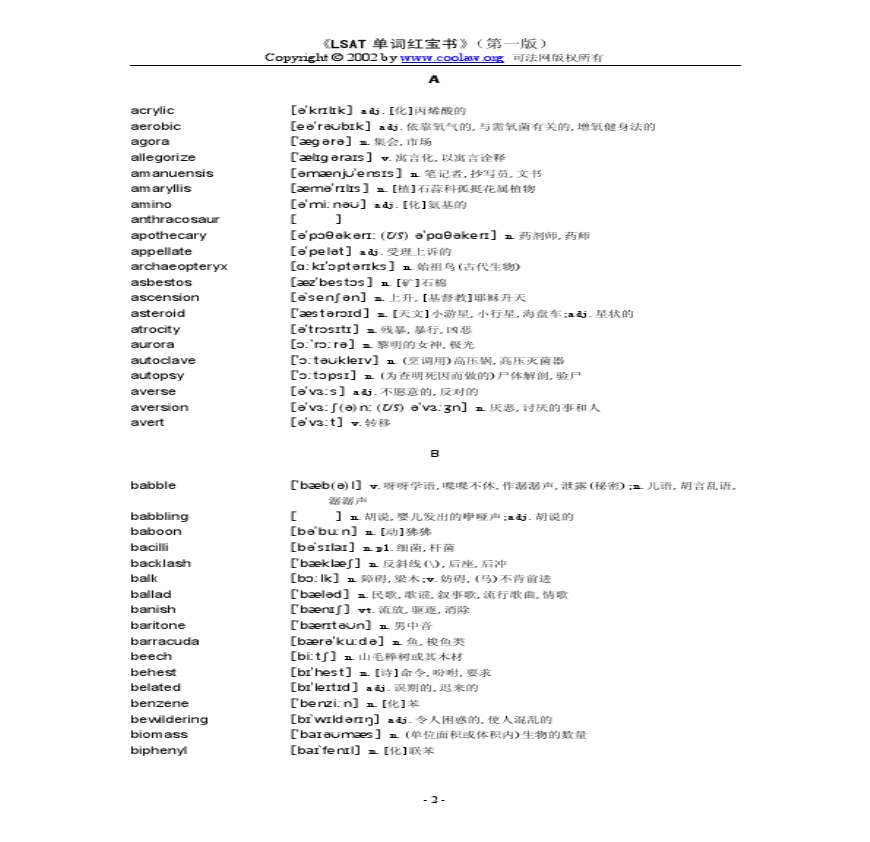 单词书: 单词[乱序] 下载_文档下载 [Ab 单词 学习资料页 《LSATLSAT单词》(第一版)Cr?b _ 学习资料页 《 单词》(第一版) Cr ? b版权所有关于《单词》说明(UPDATED) ~~~~ 《单词》之所有单词,全部精选自历年 LSAT真题, _ 学习资料页 复习备考资料全汇总_其它考试_资格考试认证_教育专区。