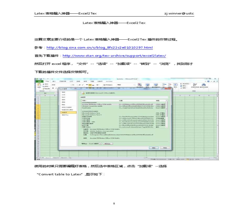 Latex表格输入神器——Excel2Tex插件_zjwinner的空间_百度空间资料下载,喜欢的朋友可以下载收藏!