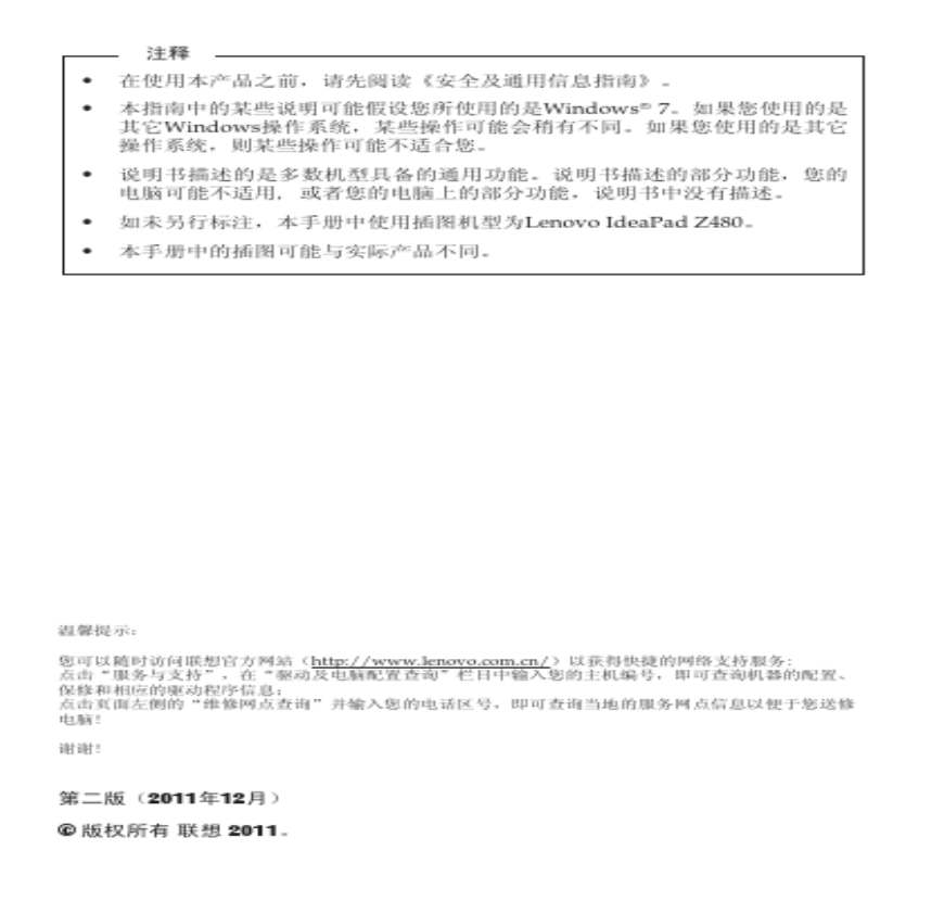 Lenovo IdeaPad Z380 Z480 Z485 Z580 Z585使用说明书.pdf 免费下载