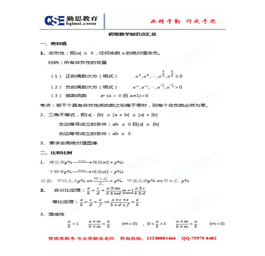 MBA初等数学知识点汇总资料下载,喜欢的朋友可以下载收藏!