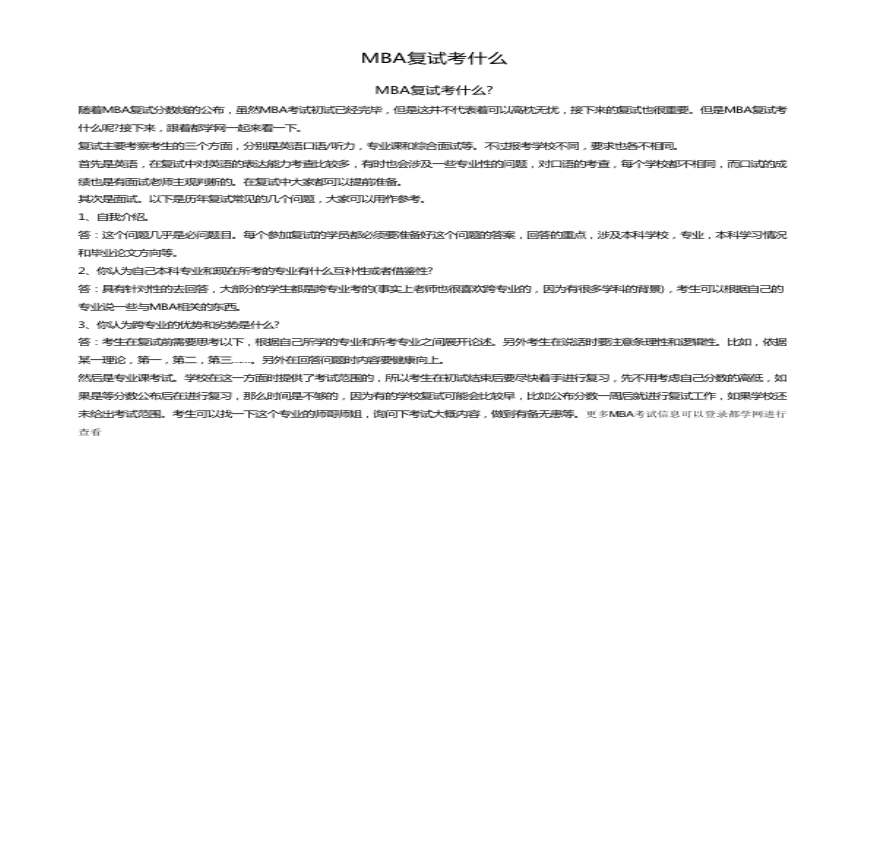 MBA复试考什么资料下载,喜欢的朋友可以下载收藏!