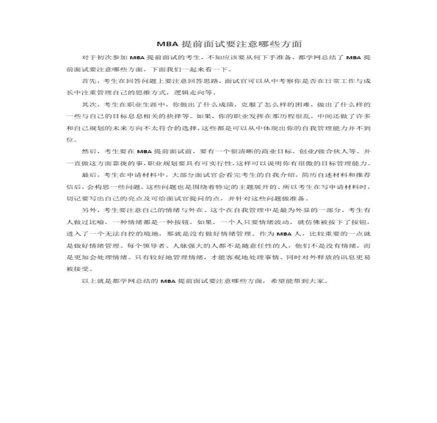 MBA提前面试要注意哪些方面资料下载,喜欢的朋友可以下载收藏!