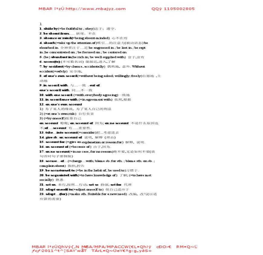 MBA英语高频词汇完整版资料下载,喜欢的朋友可以下载收藏!