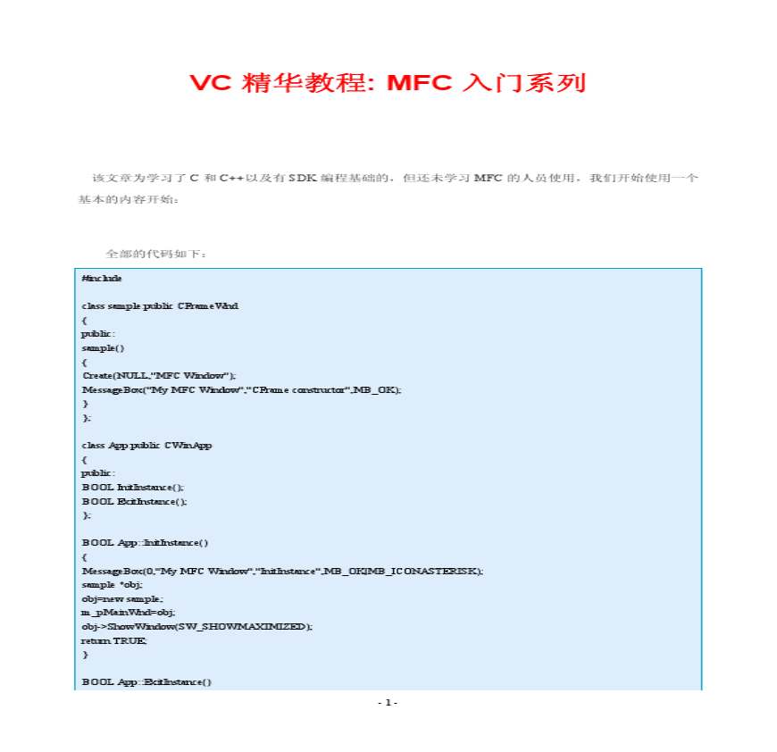 MFC入门资料下载,喜欢的朋友可以下载收藏!