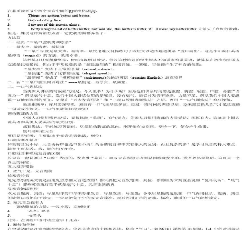 学习资料 的发音的一、连读技巧字尾辅音+字首元音“ 特别说明 美国人说另外的特点是:好听、偷懒、省力、经济原则。