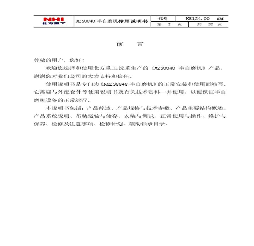 MZS8848半自磨机使用说明书资料下载,喜欢的朋友可以下载收藏!