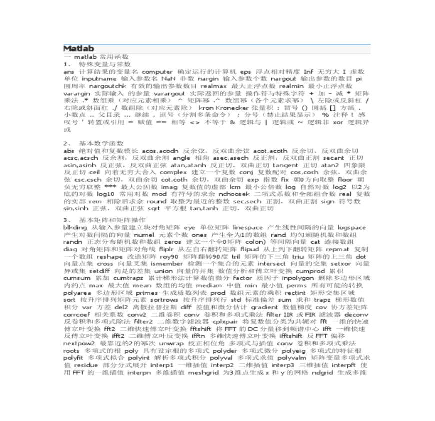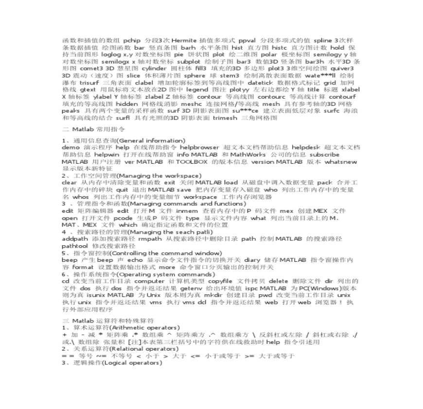 Matlab指令大全资料下载,喜欢的朋友可以下载收藏!