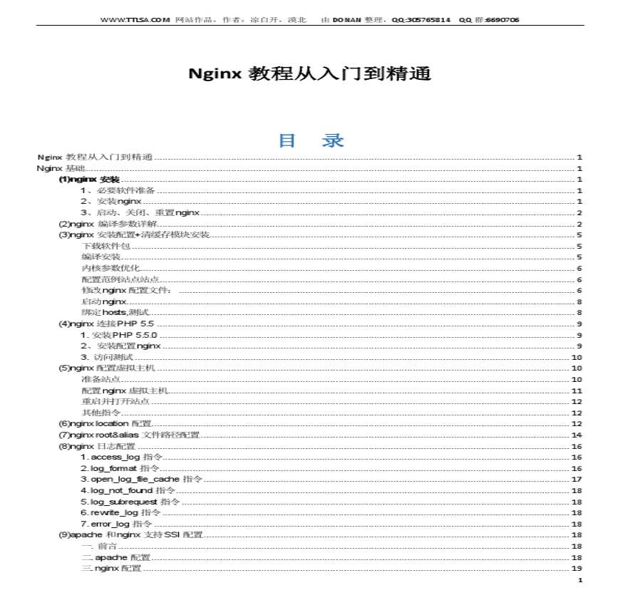 Nginx教程从入门到精通(非TTLSA官方整理)资料下载,喜欢的朋友可以下载收藏!
