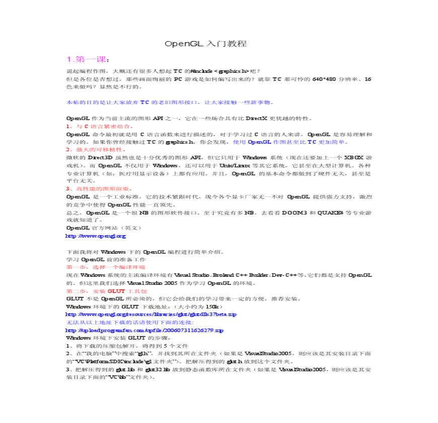 第一课 : 说起编程作图,大概还有很多人想起 TC 的 # 吧? 但是各位是否想过,那些画面绚丽的 PC 游戏是如何编写出来的?就靠 TC 那可怜OGL作为当前主流的图形 API 之一,它在一些场合具有比 DrX 更优越的特性。