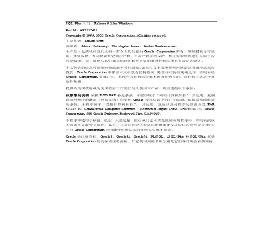 Oracle官方文档中文版-SQLPlus入门资料下载,喜欢的朋友可以下载收藏!