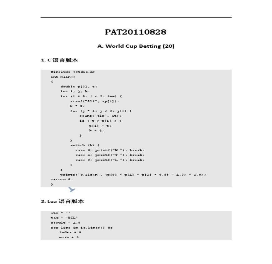 b_ 学习资料页 文档介绍: PAT真题解析参考代码 PAT A Wr C B() C语言版本# { b [], 解析WrCB()语言版本# br;br;);rrL语言版本r′WTL′( 下载b'>发贴时间:年月日其他人还搜了历年考试真题及答案 历年考试真题及答案下载 代码 是什么意思 官 考试历年真题 软考历年真题 题库 甲级真题 是什么文件格式 希赛软考历年真题 历年真题 一键历年考试真题 历年真题及答案 历年真题及答案 社工考试历年真题下载 浙江官 乙级真题 乙级真题答案 现代汉语自考历年真题 历年真题及答案 b级考试真题历年 真题 考试官