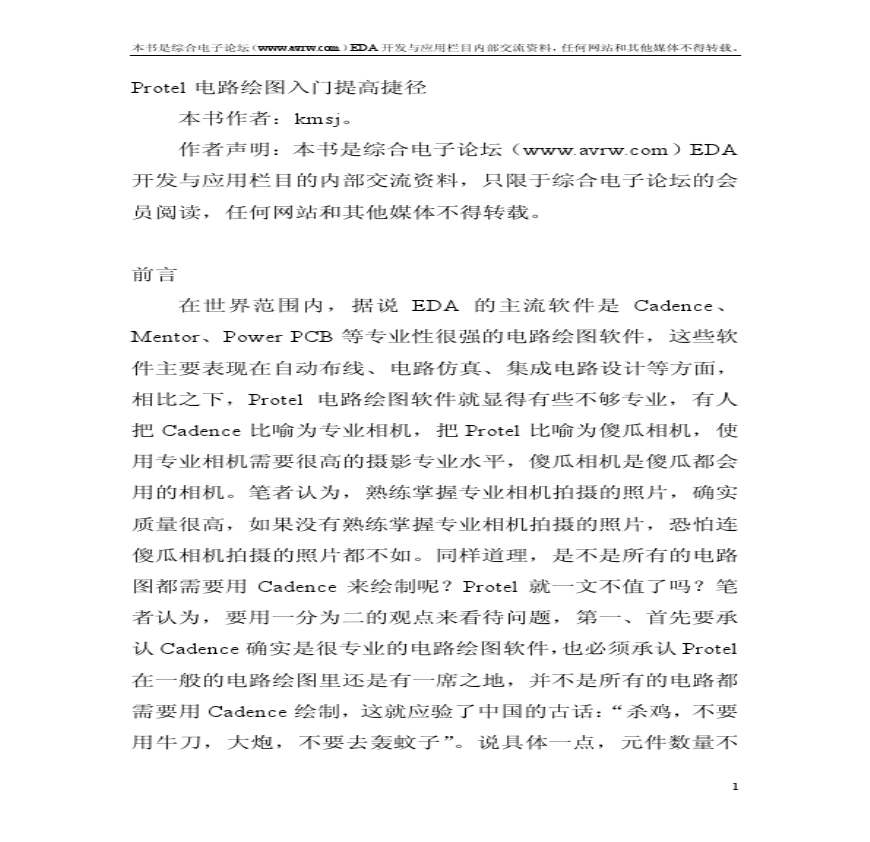 非常适合零基础者学习不希望大家把不必要的时间浪费在学习 的初期操作上,在这里做这个是为了给渴望快速了解和操作 的初学者们一个走捷径的机会,大家都可以看到,可电子资料搜索 多多文库 学习资料页 , 概述, 是集电路原理图设计与绘制印制电路板设计电路信号仿真可编程逻辑器件设计的电路CAD软件。