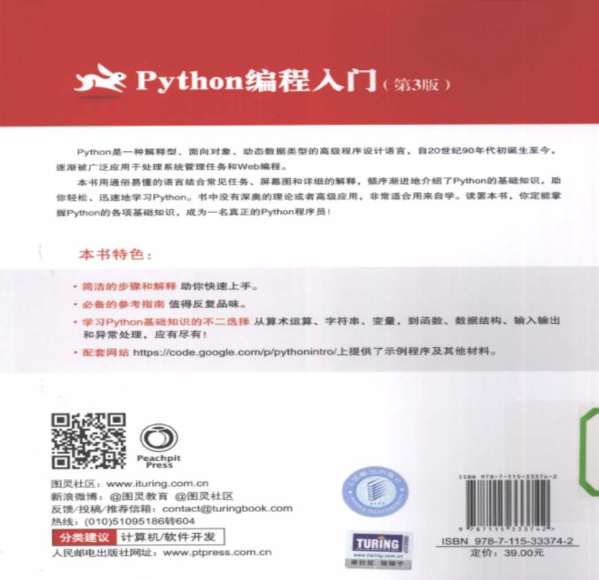 Python编程入门 第3版_(加)TobyDonaldson著;袁国忠译_2013.12_204页资料下载,喜欢的朋友可以下载收藏!