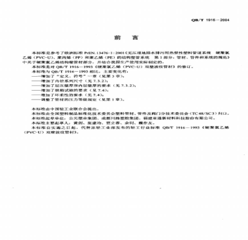 QB T1916-2004硬聚氯乙烯(pvc-u)双壁波纹管材资料下载,喜欢的朋友可以下载收藏!