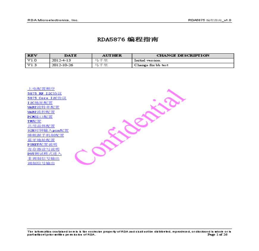 RDA5876编程指南_v1.3资料下载,喜欢的朋友可以下载收藏!