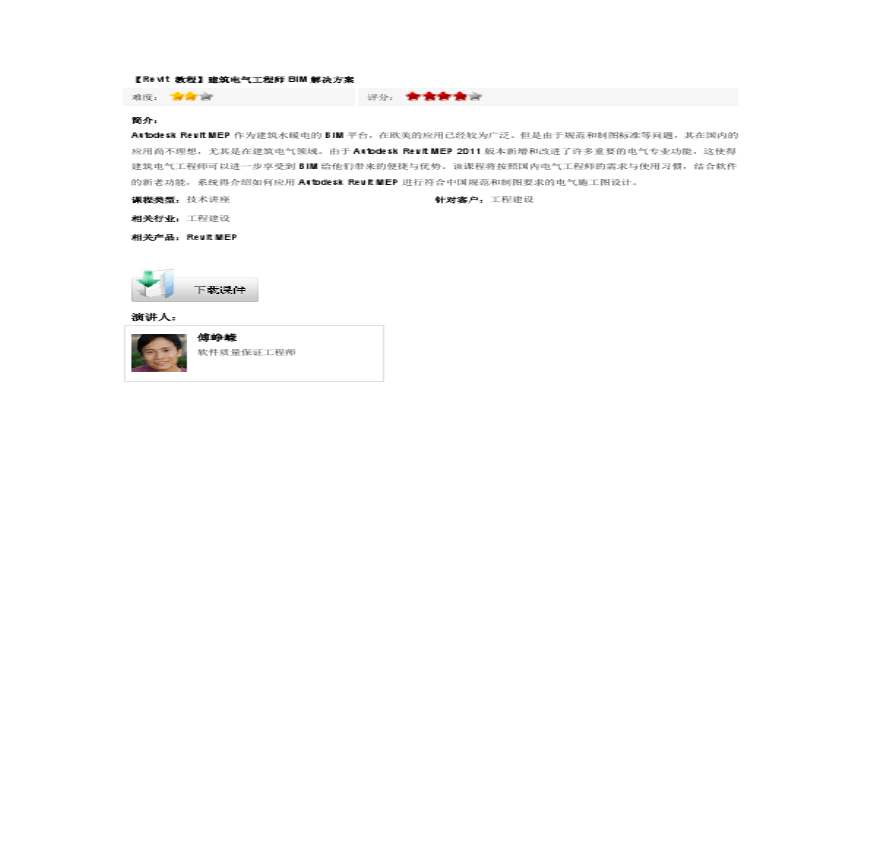 【Revit 教程】建筑电气工程师BIM解决方案 (1)资料下载,喜欢的朋友可以下载收藏!