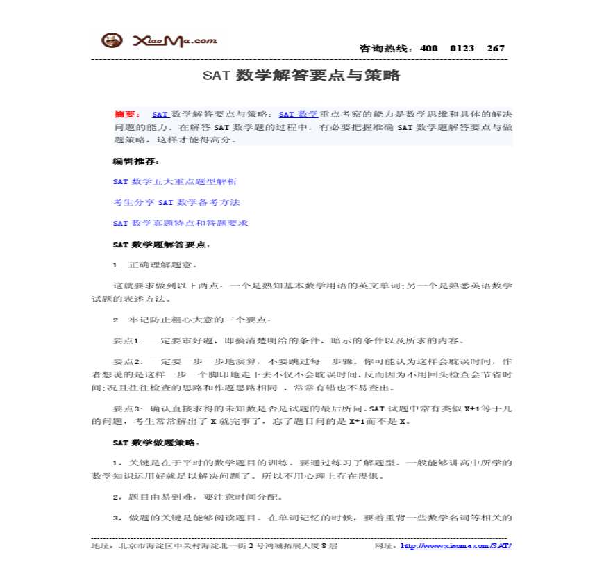 SAT数学解答要点与策略资料下载,喜欢的朋友可以下载收藏!