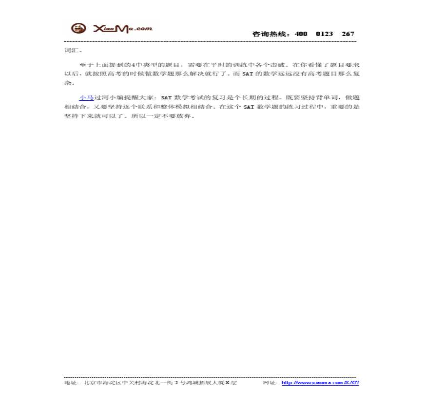 然而很多学生的SAT考试成 对于时间精力有限的出国党们,数学没考满分或者花了太多时间都是复习失败的表现 。