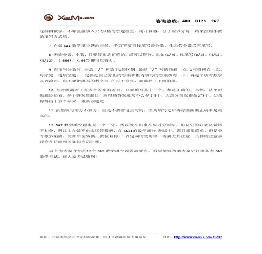 SAT数学填空解题12要点资料下载,喜欢的朋友可以下载收藏!