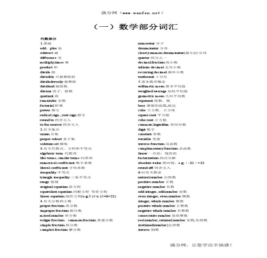 下面的SAT数学必备词汇是大家在备考SAT数学 最佳答案: 必须知道的是哪些 、有关基本运算: ,加 br减 r差 ,乘 r积 除 b可 详情>> 更多SAT数学_物理_化学_词汇相关问题>> 史上最全理科之篇_天道培训年月日最新考试基础大全新东方为大家整理了年考试基础大全的相关内容,供考生们参考,以下是详细内容。