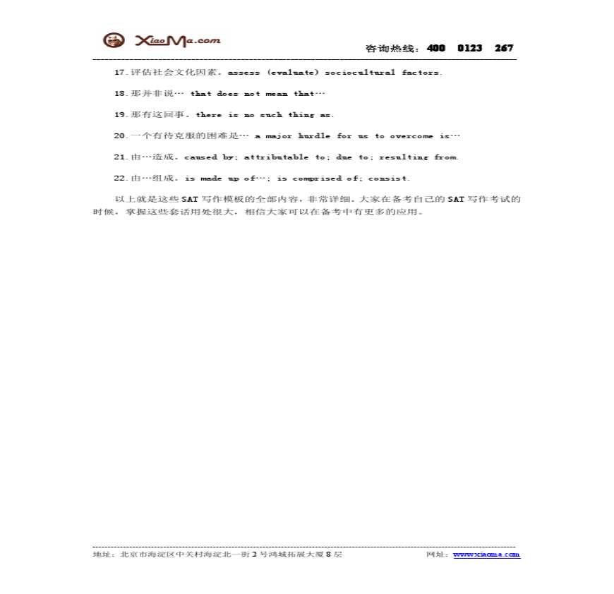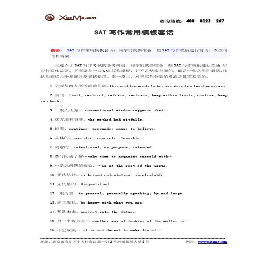 智课备考资料 (冲刺阶段必看)进入SAT写作考试的冲刺阶段,大家可以准备一些SAT写作模板进行背诵,这样可以节约一些备考时间。