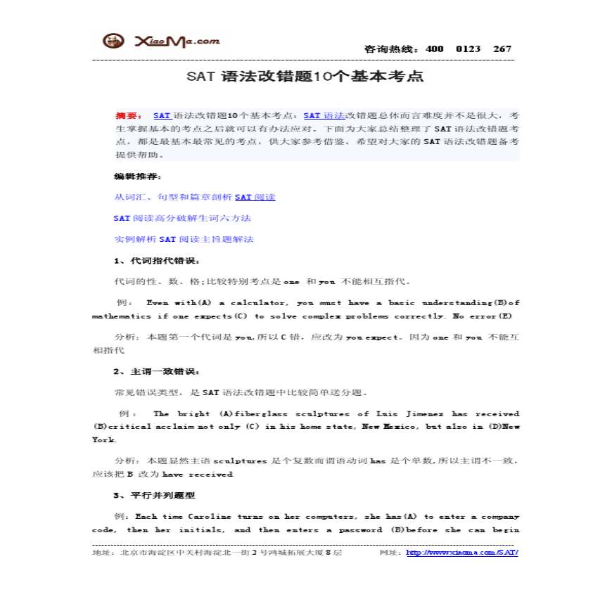 SAT语法改错题10个基本考点资料下载,喜欢的朋友可以下载收藏!