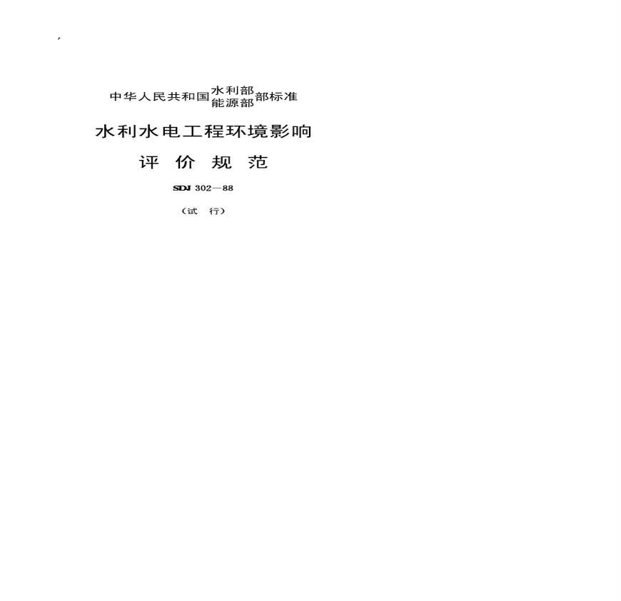 SDJ302-1988 水利水电工程环境影响评价规范资料下载,喜欢的朋友可以下载收藏!