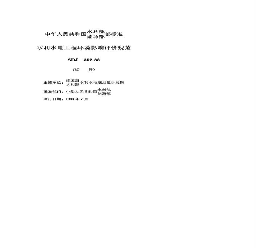SDJ302-1988 水利水电工程环境影响评价规范.pdf 免费下载