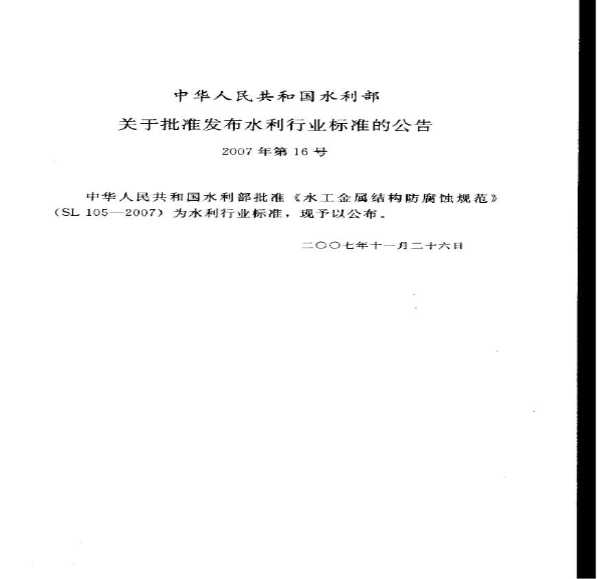 SL105-2007 水工金属结构防腐蚀规范资料下载,喜欢的朋友可以下载收藏!