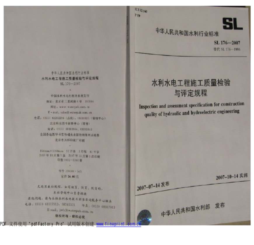 SL176-2007_水利水电工程施工质量检验与评定规程.pdf 免费下载