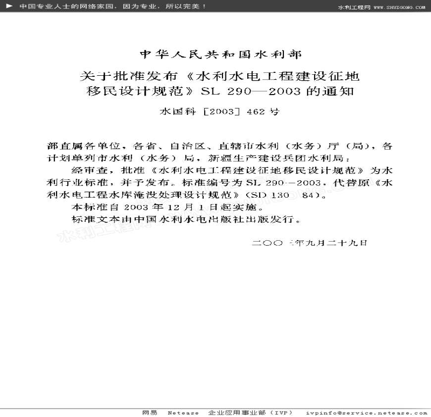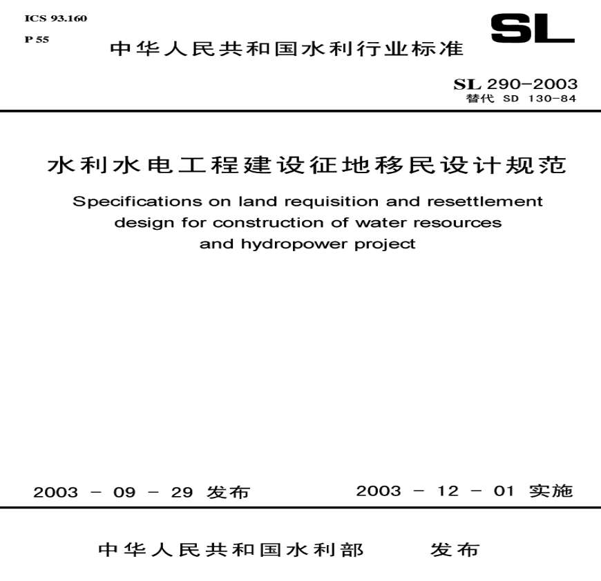 SL 290-2003 水利水电工程建设征地移民设计规范资料下载,喜欢的朋友可以下载收藏!